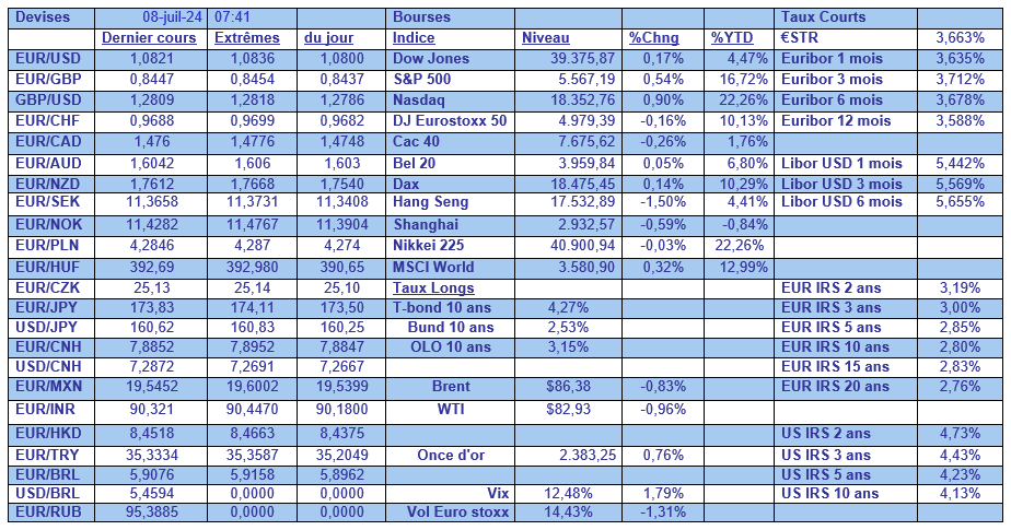 Ces chiffres, ainsi que les autres indicateurs, devraient inciter les membres de la FED à ouvrir la discussion sur une baisse des taux en septembre lors de leur Comité des 30 et 31 juillet, surtout qu’un certain nombre d’entre eux avaient indiqué suivre de près l’évolution du marché de l’emploi.