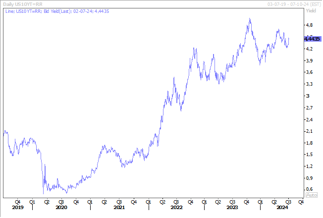 Cet échec a renforcé le scénario d’une victoire de Trump, et la décision, hier, de la Cour suprême, qui a déclaré que Trump bénéficiait d’une large immunité contre les tentatives d’annulation de sa défaite aux élections de 2020, a renforcé ce sentiment. Or le marché a le sentiment que Trump sera inflationniste, ce qui pourrait inciter la FED à retarder encore un peu plus ses baisses de taux.