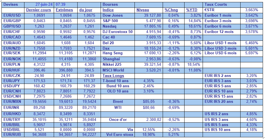 La seule petite lueur d’espoir pourrait venir d’une poursuite de la détente des taux de la part de la BCE, mais avec le risque d’encore mettre un peu plus la pression sur l’euro.