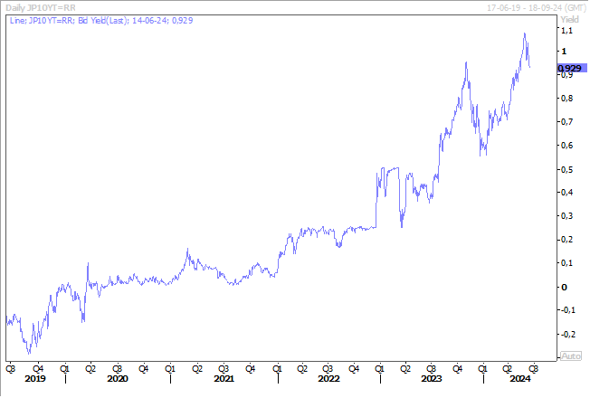La première réaction à cette annonce a été plutôt , avec une baisse du rendement de l’obligation à 10 ans, mais par contre, le yen s’est affaibli par rapport au dollar dans la crainte de perdre le soutien de la BOJ.