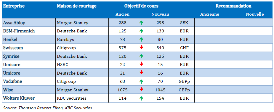 Dans le top 10 aujourd'hui : Umicore, UCB, Van Lanschot, ING, ArcelorMittal, Ageas, D'Ieteren, KBC Groep, Lotus et Barco.
