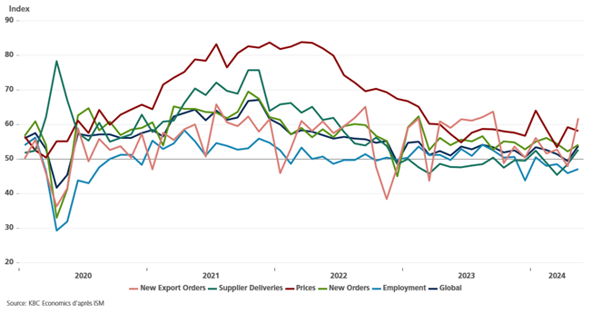 Le chaud d’abord, avec un rebond assez net de l’indice ISM des services, qui est passé de 49.4 en avril à 53.8 en mai, avec une très forte hausse de l’activité économique et des nouvelles commandes.