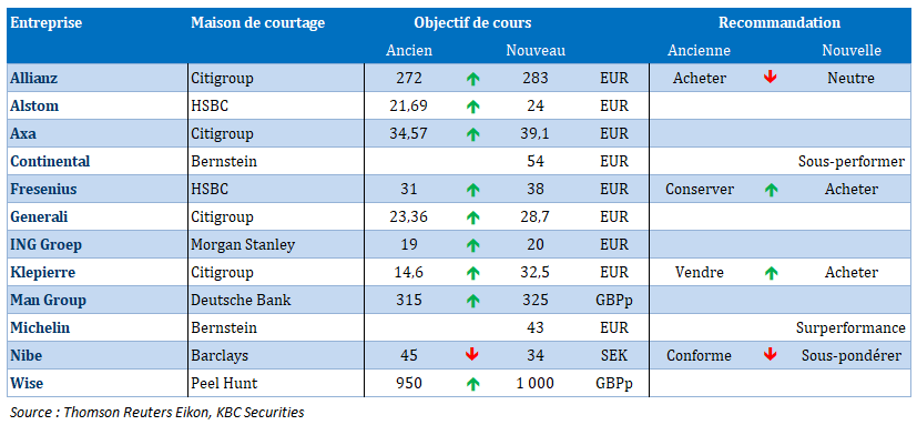 Source : Bernard Keppenne, Chief Economist - CBC Banque & Assurances