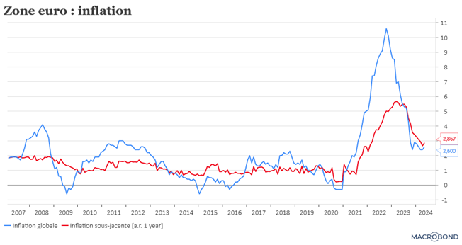 Première raison, l’inflation en zone euro ne recule plus, et même à légèrement progressé le mois dernier, ce qui confirme que le reflux de cette dernière sera lent.