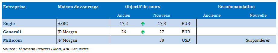 • KBC Ancora paie un dividende intérimaire de 4,09 euros par action.