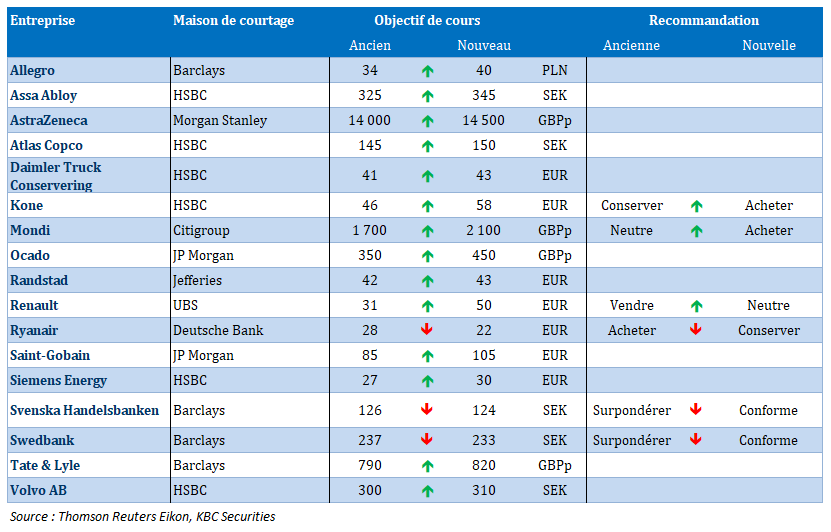 Dans le top 10 aujourd'hui : Cofinimmo, Umicore, BE Semiconductor Industries, Ageas, Recticel, Ackermans & van Haaren, Colruyt Group, Warehouses De Pauw, Nyxoah, KBC.
