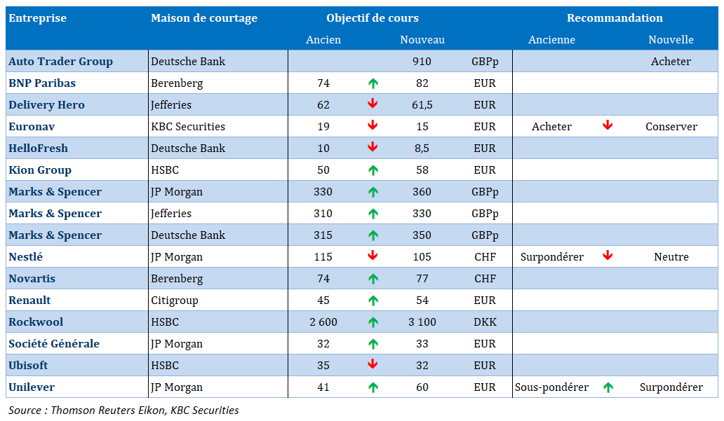 Dans le top 10 aujourd'hui : Ackermans & van Haaren, Umicore, (Financière de) Tubize, LVMH, Onward Medical, Cofinimmo, Greenyard, ASM International, ASML, Solvay.