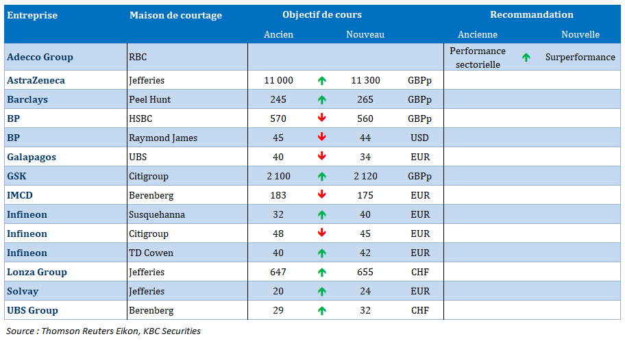 Source : Bernard Keppenne, Chief Economist - CBC Banque & Assurances