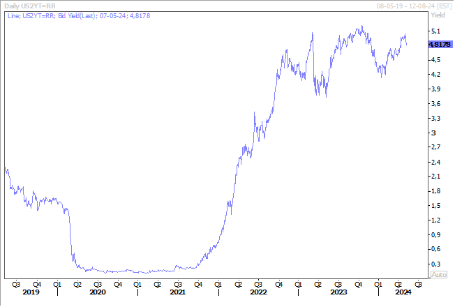 Le rendement du Treasury 2 ans, qui avait dépassé les 5 % la semaine passée, est revenu à un niveau plus bas depuis la réunion de la FED, mais devrait continuer de connaitre des moments de tension en fonction des déclarations des membres de la FED. Le suspense est de savoir si la baisse des taux aura lieu en septembre, en novembre ou en décembre.