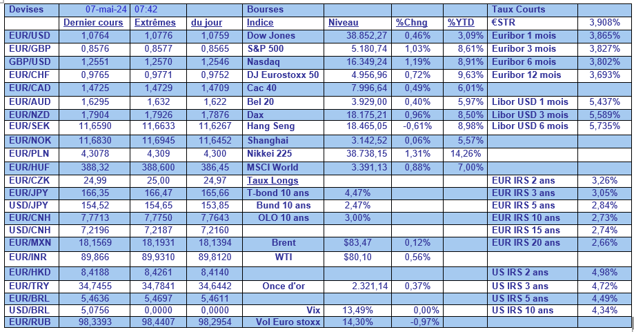 Et le communiqué de conclure, « la trajectoire des taux d’intérêt qui garantira au mieux le retour de l’inflation à l’objectif dans un délai raisonnable reste incertaine et le Conseil n’exclut rien. Le Conseil s’appuiera sur les données et sur l’évolution de l’évaluation des risques ».