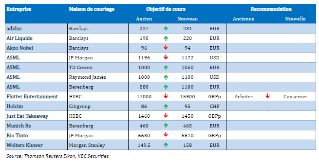 Dans le top 10 aujourd'hui : ASML, UCB, KBC Groep, Solvay, Melexis, ASM, KBC Ancora, LVMH, Azelis et Pharming Group.