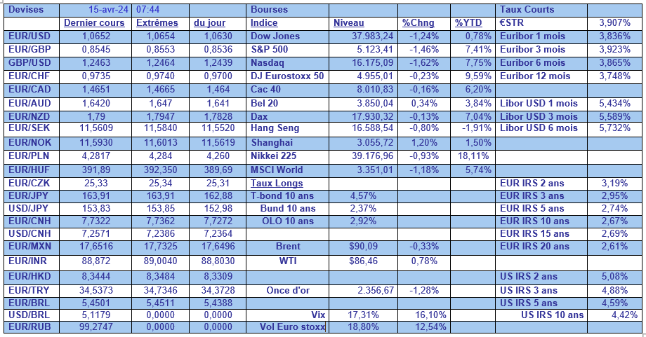 C’est entre autre le cas du différentiel de taux entre le Bund 2 ans et le Treasury 2 ans, ce qui explique pourquoi l’euro s’est affaibli par rapport au dollar, et cela depuis la réunion de la BCE de jeudi passé qui a ouvert la porte à une baisse des taux en juin.