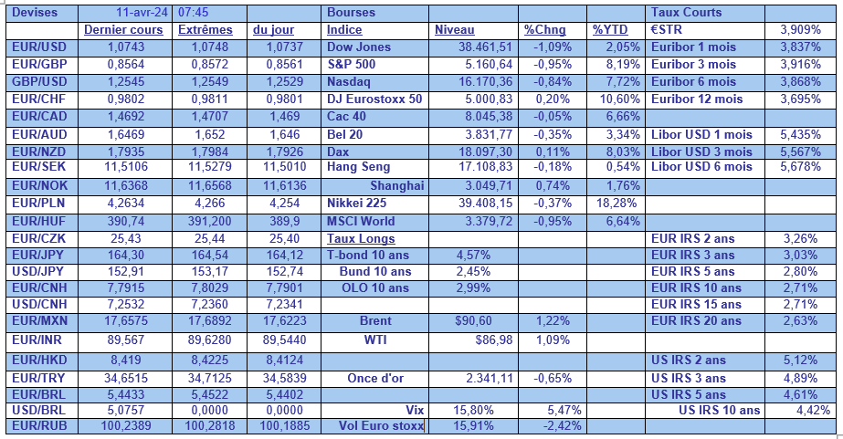 Et comme la perspective d’une baisse des taux en juin s’est envolée, et qu’elle est maintenant attendue pour septembre, et que l’assouplissement attendu de 75 points base sur l’ensemble de l’année a été ramené à 42 points de base, c’est sur le front des taux obligataires que la réaction a été la plus marquée.