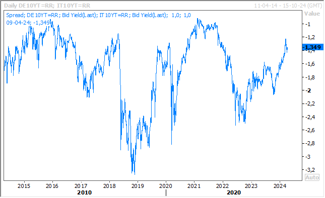 Il faudra évidemment voir comment ces prévisions seront analysées par la Commission dans le cadre des nouvelles normes de contrôle des finances publiques. Mais pour le moment, ces annonces n’ont aucun impact sur le différentiel de taux entre le Bund 10 ans et l’obligation italienne sur la même période.