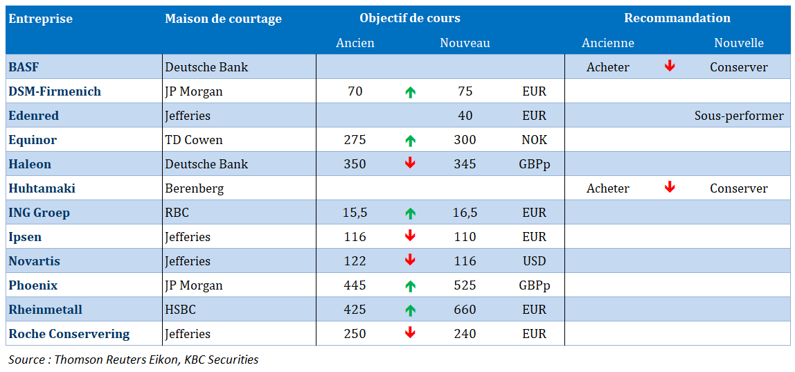 Dans le top 10 aujourd'hui : ING, Solvay, Alfen, Shell, Sofina, Prosus, Melexis, Syensqo, Onward Medical, Umicore.