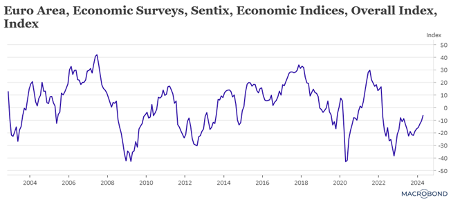 Deuxième indicateur positif, l’indice Sentix, qui mesure le moral des investisseurs dans la zone euro et qui se situe à son niveau le plus élevé depuis février 2022.