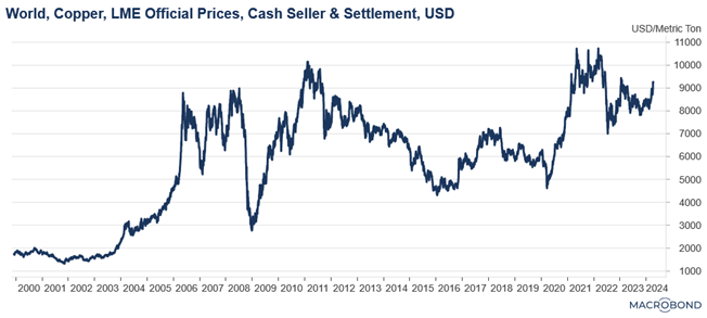 En effet, les prix de l’or, de l’argent, du cuivre (voir graphique), du zinc et de l’aluminium ont sensiblement progressé depuis le début de l’année.