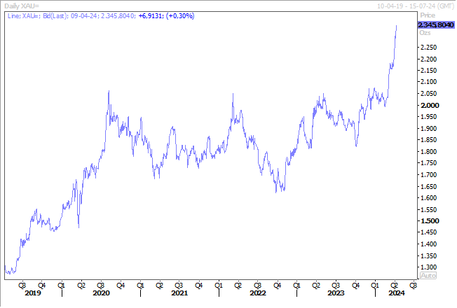 L’or est encore un cas à part, car il est porté par le contexte géopolitique plus qu’incertain, par les achats de la part des Banques centrales et par la volonté de la Chine et la Russie de réduire leur dépendance au dollar en achetant de l’or.
