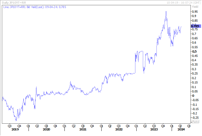 Mais dans l’ensemble la hausse des taux obligataires a été contenue, comme le montre l’évolution du rendement de l’obligation à 10 ans, ce qui permet au gouverneur de la Banque du Japon de se montrer confiant.