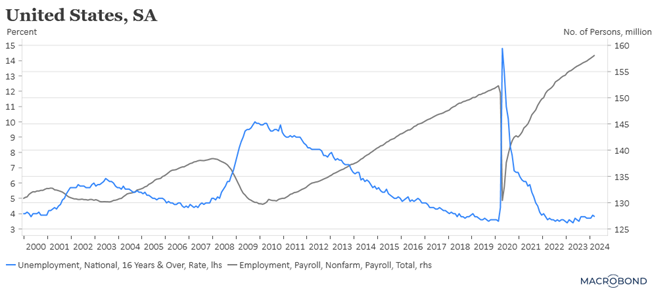 Les chiffres maintenant. Le taux de chômage a baissé à 3.8% en mars contre 3.9% en février, ce qui fait que ce taux de chômage est resté inférieur à 4 % pendant 26 mois consécutifs, soit la plus longue période de ce type depuis la fin des années 1960.