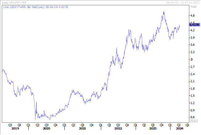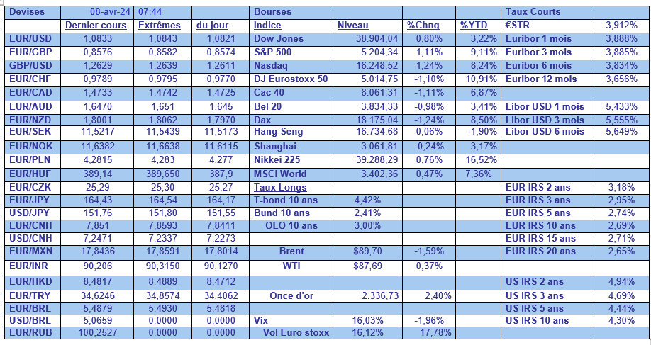 Et assez logiquement, comme la perspective d’une baisse des taux en juin s’éloigne et que l’ampleur de la baisse sur l’ensemble de l’année se réduit, les rendements obligataires ont poursuivi leurs mouvements de hausse. Le rendement du Treasury 10 ans a ainsi pris 0,10 % sur la seule journée de vendredi.