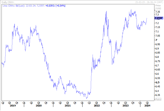 Et malgré les ventes massives de dollar par les banques d’Etat chinoises, le mouvement ne s’est pas inversé, car les inquiétudes persistent sur la situation du secteur immobilier en Chine et sur l’absence de soutien de la part des autorités.