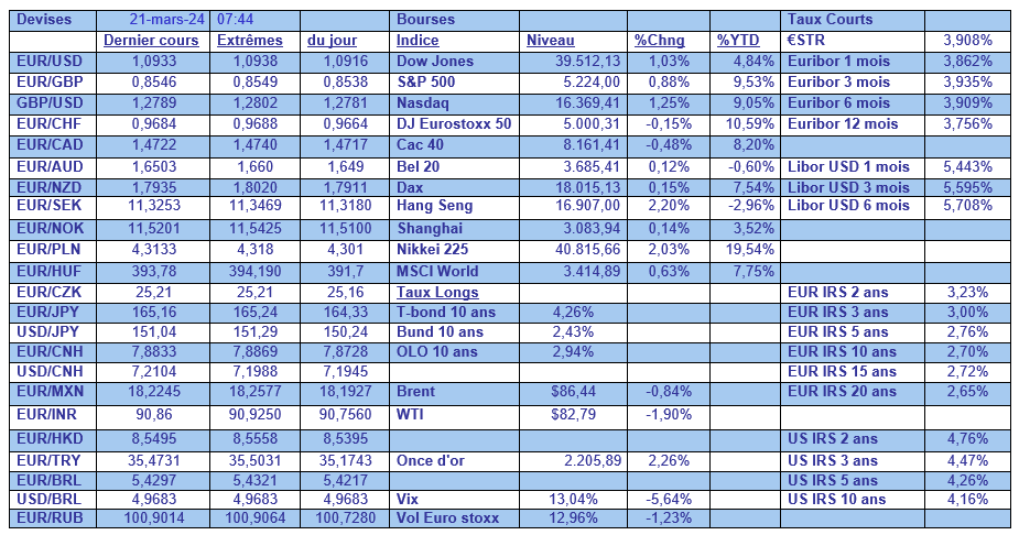 Il suffit d’observer ce matin, le recul des taux obligataires, du dollar et la hausse des bourses pour comprendre que Powell s’est montré rassurant sur la trajectoire de la FED.
