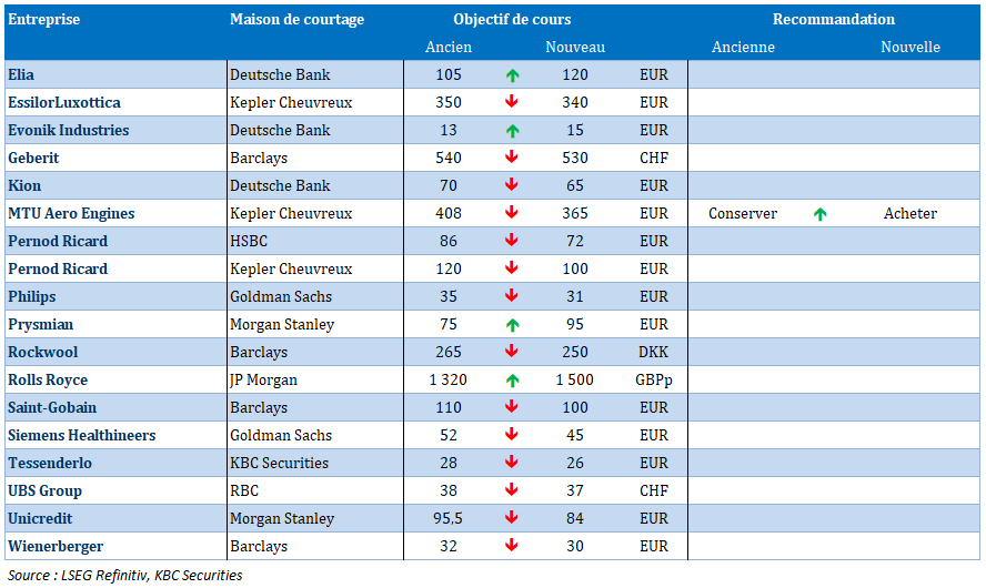 Source : Bernard Keppenne, Chief Economist - CBC Banque & Assurances