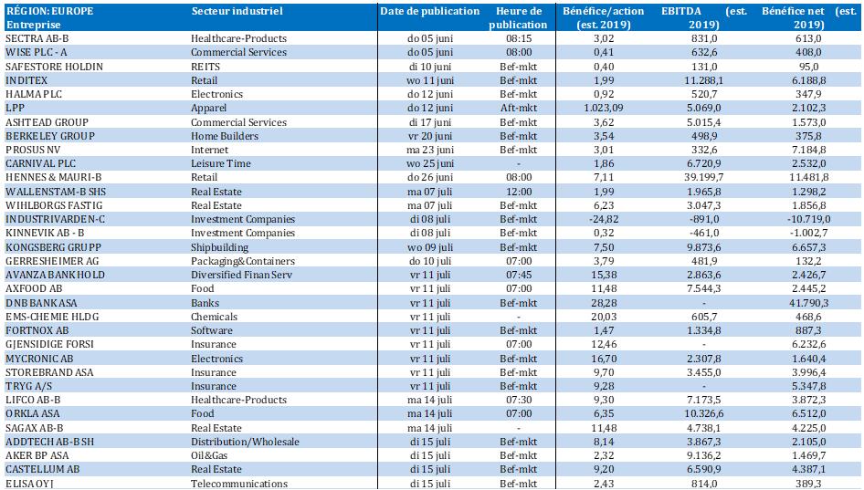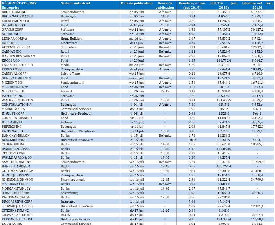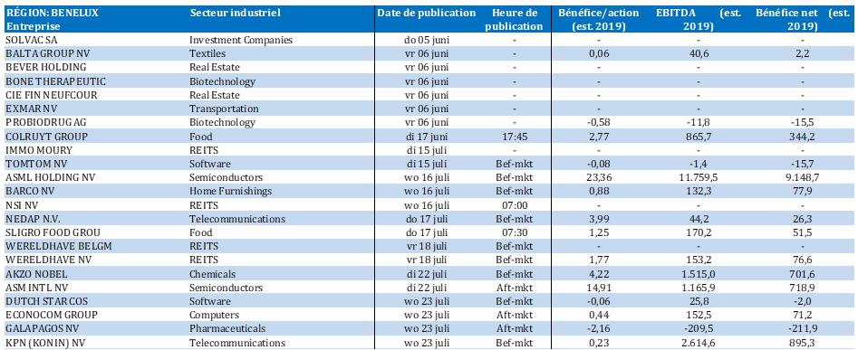Calendrier des résultats