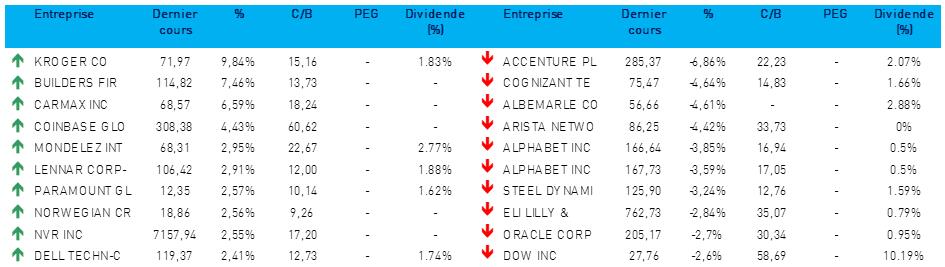 - Holcim {{7422906, HOLCIM LTD., HOLN}} : l’action Holcim a chuté de 48 % avant l’ouverture, en raison de la scission de sa filiale nord-américaine Amrize, active actuellement aux États-Unis et au Canada. Holcim concentrera désormais ses activités sur l'Europe, l'Amérique latine, l'Australie et l'Afrique du Nord.
