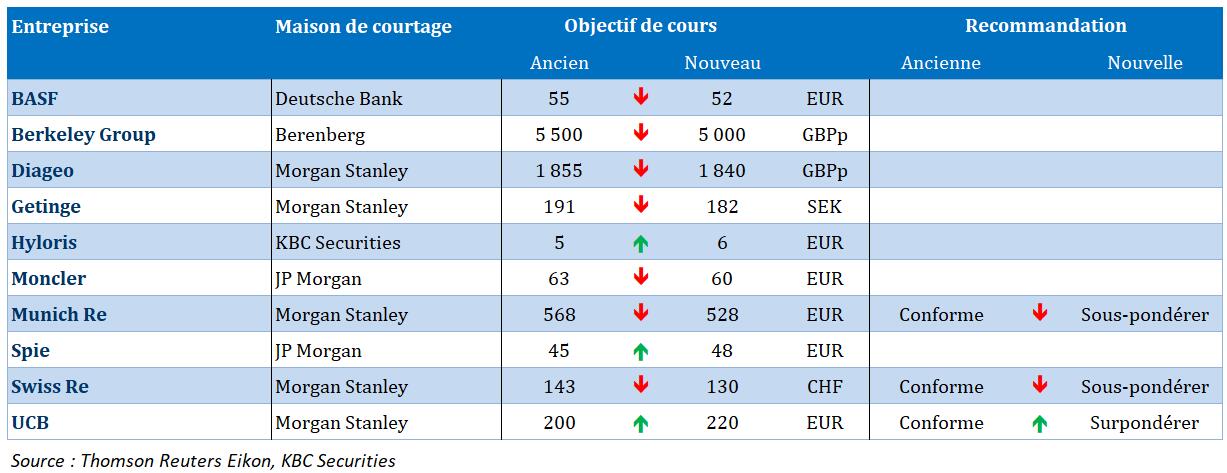 - Galapagos {{11778399, GALAPAGOS NV, GLPG}} : la société nomme Aaron Cox au poste de CFO à compter du 7 juillet 2025, en remplacement de Thad Huston, qui restera en poste jusque fin juillet pour une transition en douceur. Aaron Cox apporte l'expérience qu'il a acquise chez Horizon Therapeutics, où il a participé à l'acquisition d'Amgen pour 28 milliards de dollars. Son expertise dans ce type de transactions est jugée essentielle pour la stratégie de Galapagos dans le domaine de la thérapie cellulaire et pour le déploiement de ses liquidités (3,3 milliards d'euros). KBCS maintient sa recommandation « Acheter » et son objectif de cours de 37 euros.