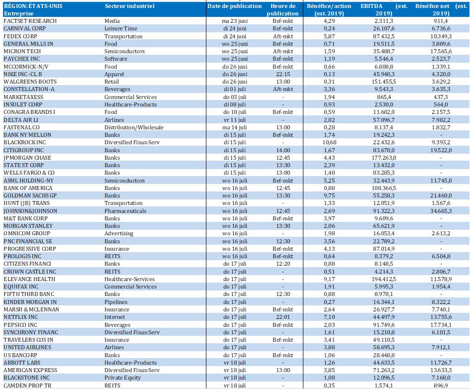 Calendrier des résultats