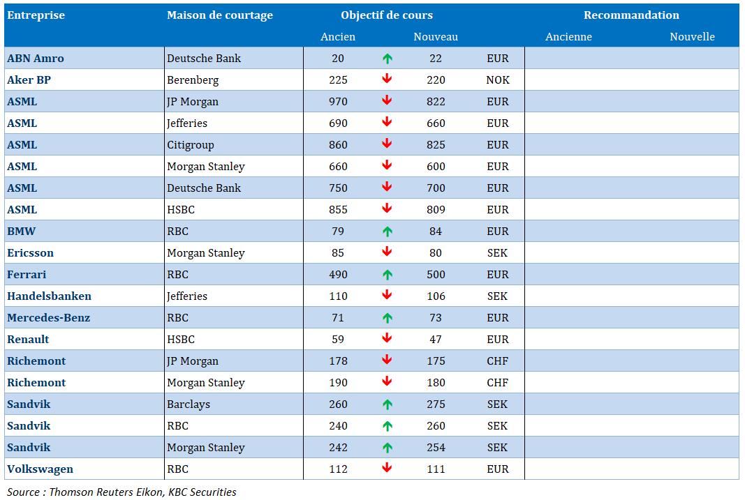 - En Asie, la glissade d'ASML a exercé une certaine pression sur les « chippers » ou fabricants de microprocesseurs (comme Tokyo Electron et Advantest). En revanche, le Japon (+0,5 %) et le reste de l'Asie (Chine +0,3 %, Taiwan 0,1 %, Hong Kong +0,1 %) sont restés dans le vert. Nous attendons avec intérêt la publication des résultats trimestriels, en particulier ceux du secteur technologique…