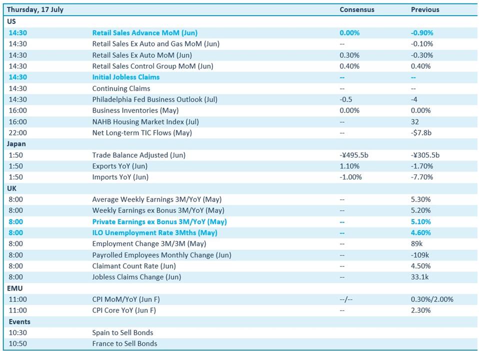 - Sur le front de la guerre commerciale, les États-Unis vont imposer des droits de douane de 19 % sur les produits provenant d'Indonésie. Voilà donc un nouveau « deal » à ajouter à la liste, après quoi on en a appris davantage sur les prélèvements prévus sur les produits pharmaceutiques. Mais ce que l’on continue d'attendre, surtout, ce sont des éclaircissements sur les négociations entre les États-Unis et l'Union européenne. Bloomberg, en particulier, croit savoir que la France, suivie par un nombre croissant d'États membres de l'UE, entend persuader l'UE d'utiliser son outil anti-coercitif contre les États-Unis s’il s’avère impossible de conclure un accord avant l’entrée en vigueur des droits de douane de 30 % le 1er août. Cette initiative, voire la simple rumeur de cette initiative, pourrait attiser davantage encore les braises du conflit commercial.