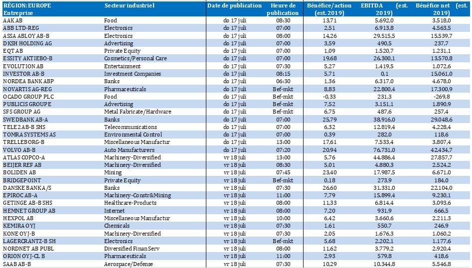 - Volvo Group {{248007, VOLVO AB, VOLV B}} : le constructeur suédois de camions a réalisé au deuxième trimestre un bénéfice d'exploitation de 13,5 milliards de couronnes suédoises, légèrement supérieur à la moyenne des prévisions des analystes (13,3 milliards de couronnes suédoises). Le bénéfice reste toutefois inférieur au chiffre de l'année précédente (20,3 milliards), en raison de la baisse des ventes de camions et des incertitudes relatives à l’Amérique du Nord. Les revenus des services ont partiellement compensé ce déclin, et le marché européen s'est stabilisé. Volvo semble mieux placé que ses concurrents pour résister à la menace des droits d'importation aux États-Unis, grâce à une production locale plus importante.
