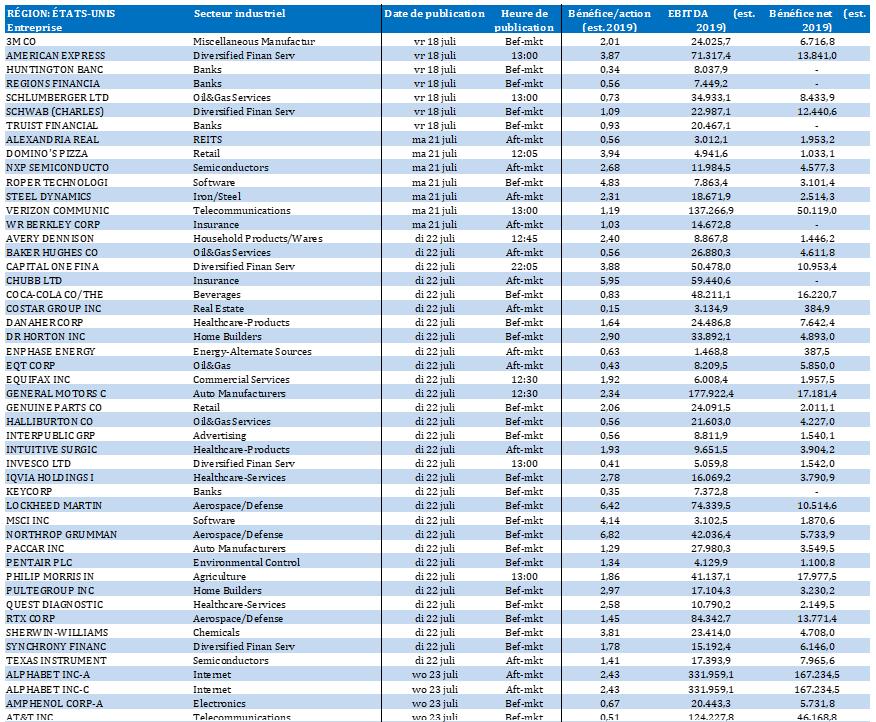 - Abbott Laboratories {{251878, ABBOTT LABORATORIES, ABT}} : le fabricant américain d'appareils médicaux s'attend pour l’exercice en cours à des vents contraires pouvant représenter plus d'un milliard de dollars en raison de la baisse des ventes de ses tests anti-Covid, de l’instauration de nouveaux tarifs douaniers américains et du gel des programmes d’aide humanitaire à l'étranger. Pour le deuxième trimestre, le bénéfice ajusté par action s’élève à 1,26 dollar, dépassant légèrement la moyenne des prévisions des analystes (1,25 dollar). Pour le trimestre en cours, Abbott s’attend à un bénéfice compris entre 1,28 et 1,32 dollar par action, soit un montant inférieur à la moyenne des prévisions des analystes (1,34 dollar). La société investit dans de nouveaux sites de production en Géorgie, dans l'Illinois et au Texas pour soutenir son pôle cardiovasculaire.