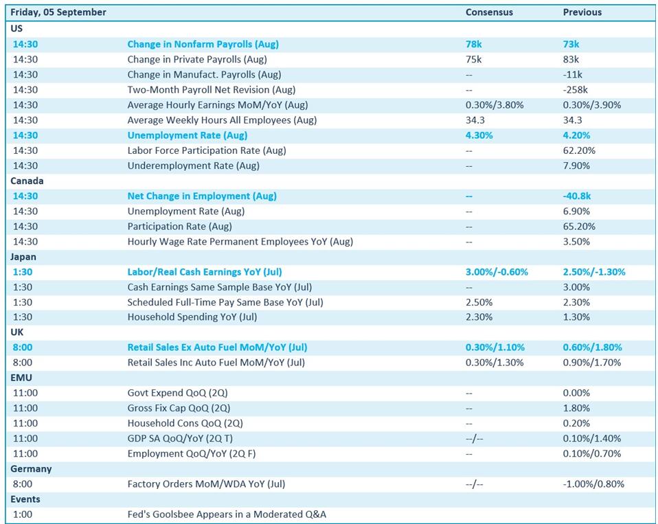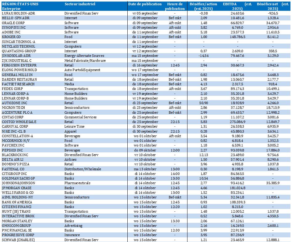- États-Unis : rapport sur le marché de l’emploi (août), taux de chômage (août), évolution des salaires (août)