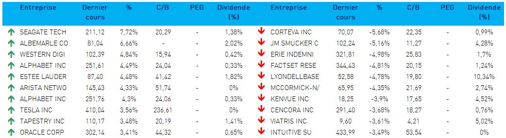 - Tesla {{37295290, TESLA INC., TSLA}} : l’action du constructeur de véhicules électriques, qui mise fortement sur l'IA et sur la robotique, a progressé après l'achat d’actions à hauteur de 1 milliard de dollars par son CEO Elon Musk. Cet achat est le premier qu’Elon Musk ait réalisé sur le marché depuis 2020, ce qui est considéré comme un signe fort de confiance dans l'avenir de l'entreprise. Il fait suite à l'annonce d'une rémunération potentielle de mille milliards de dollars pour Elon Musk, liée à des objectifs ambitieux. Malgré les récentes pressions sur les marges et la baisse des ventes, Elon Musk semble avoir repris fermement les rênes de Tesla en main.