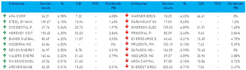- Eli Lilly {{271586, ELI LILLY & CO., LLY}} : le laboratoire pharmaceutique met au point un médicament amaigrissant expérimental, l'orforglipron, qui pourrait bénéficier d’une procédure d’approbation accélérée grâce à un nouveau programme de la FDA qui prévoit une période d'évaluation d'un à deux mois. Selon Goldman Sachs, le lancement accéléré du médicament générerait un chiffre d'affaires supplémentaire d'un milliard de dollars. Selon une étude récente, l’orforglipron, qui imite l'hormone GLP-1, a aidé les patients à perdre en moyenne 12,4 % de leur poids corporel. En moyenne, les analystes s'attendent pour ces nouvelles pilules GLP-1 un prix avoisinant les 400 dollars par mois.