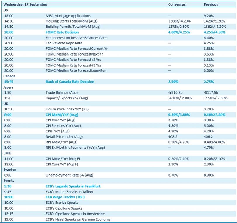 - Les marchés boursiers européens sont parvenus à tenir le coup pendant la majeure partie de la journée, mais cette relative vigueur s'est dissipée en fin de séance. Bien entendu, c’est l’attitude de la Réserve fédérale, aux États-Unis, qui intéressait principalement les investisseurs, car une baisse du taux directeur (la première depuis longtemps) aura naturellement des conséquences. Ce taux directeur devrait baisser de 25 points de base pour s'établir à 4 – 4,25 %, mais ce qu’il faudra surtout suivre de près, ce sont les perspectives relatives à l’évolution future de la politique monétaire. On peut s'attendre à voir la Fed maintenir son approche prudente en matière de communication et donc continuer de se réfugier derrière « les données encore à venir ».