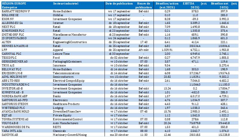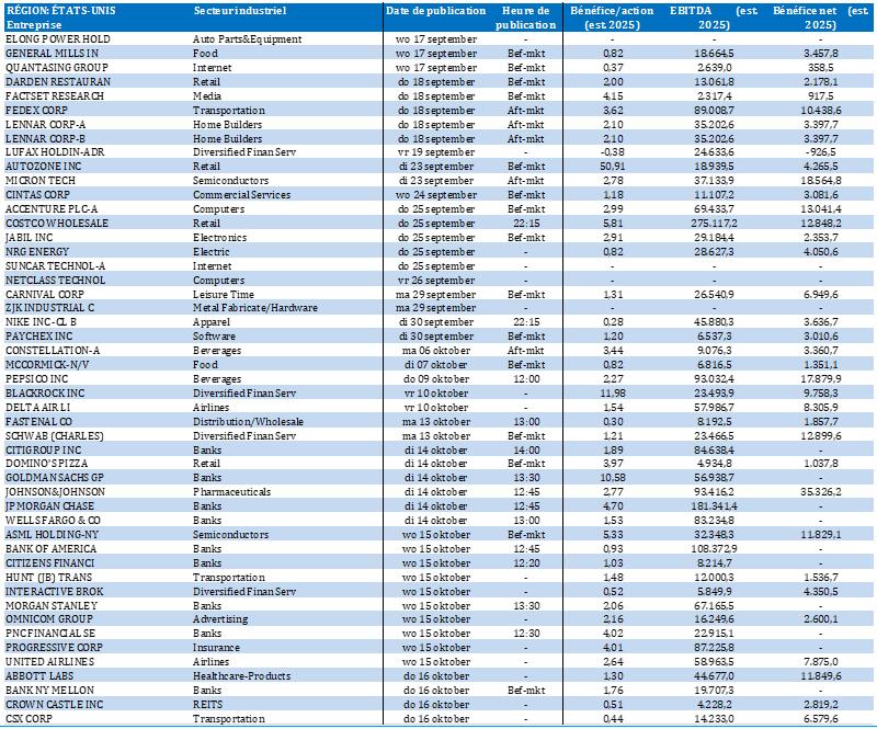 - États-Unis : décision sur les taux d'intérêt (prévision : -25 pb)