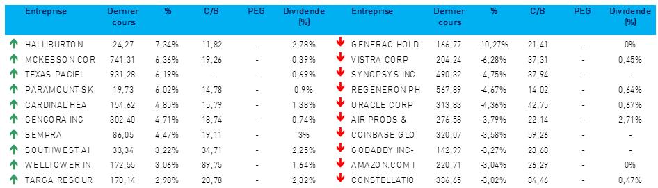 - Amazon {{252992, AMAZON.COM INC., AMZN}} : la plateforme de commerce en ligne va débourser un montant de 2,5 milliards de dollars, sous forme d'amendes et de remboursements, en règlement d’un litige avec l'autorité américaine de la concurrence, la FTC. L'entreprise aurait trompé ses clients lors de la souscription d'abonnements Prime. Quelque 35 millions de membres Prime peuvent prétendre à un remboursement de 51 dollars. Amazon ne reconnaît aucune faute et affirme que la plupart des mesures imposées par cet accord sont déjà en place.