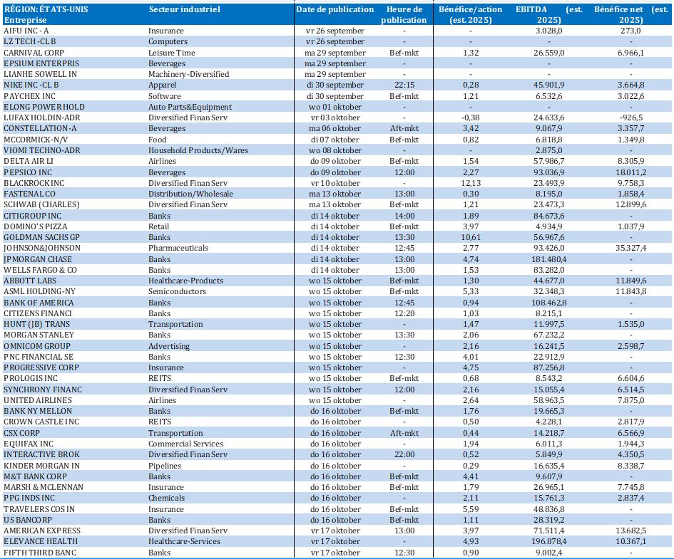 - À Wall Street, on a initialement constaté une certaine résistance, malgré un recul de 0,5 % à la clôture, tant pour l’indice S&P500 que pour le Nasdaq. Le fil rouge, en l’occurrence, était simple : prises de bénéfices, d’une part, et attention particulière pour les discours des dirigeants de la Fed, d’autre part. Tout cela se trouve en effet au cœur de la question du moment, à savoir jusqu'où le taux directeur va continuer de baisser aux États-Unis. C'est précisément là que le réalisme l'emporte rapidement sur l'optimisme aveugle : la persistance d'une inflation élevée et d’indicateurs économiques meilleurs que prévu limite la capacité de la Fed à réduire rapidement et fortement ses taux, indépendamment de ce que Son Impérialitude Donald Trump pourrait souhaiter.