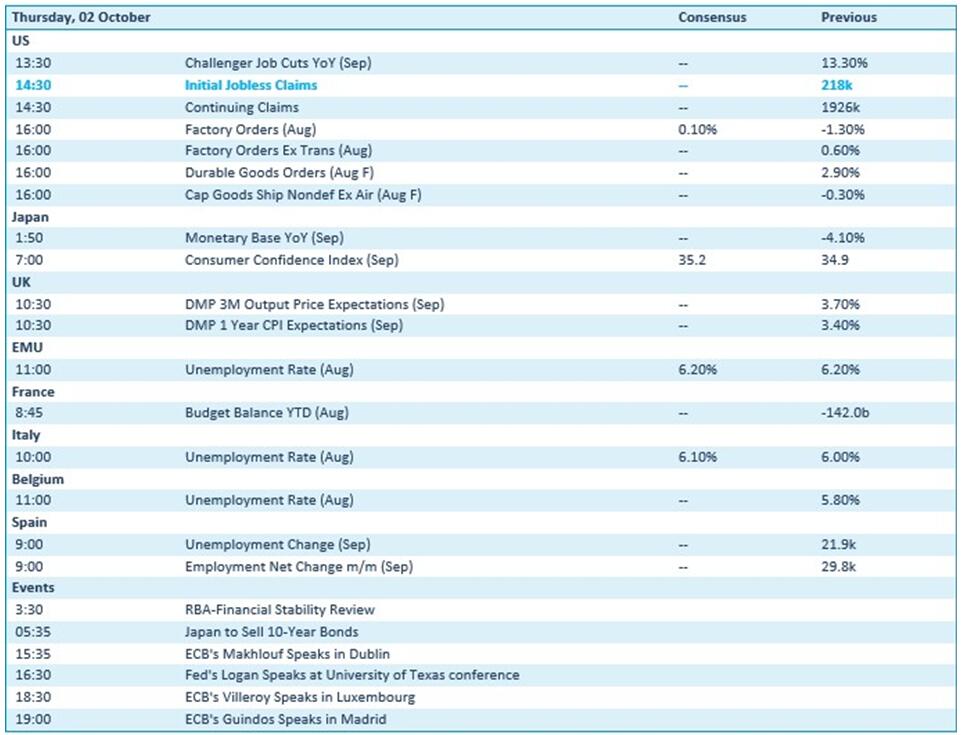 - À l’ouverture, hier, les marchés boursiers se sont montrés quelque peu mitigés, en pleine digestion des conséquences du « shutdown », à savoir la fermeture partielle des services publics fédéraux aux États-Unis. Minuit a sonné sans que Républicains et Démocrates parviennent à un accord de financement, ce qui a immédiatement suscité des incertitudes quant à l’avenir immédiat du flux de données économiques et à la clarté des orientations politiques. Le sentiment est néanmoins resté positif : l’indice S&P 500 a progressé d'environ 0,34 %, le Nasdaq a pris environ 0,42 % et le Dow Jones a gagné plus ou moins 0,09 %. En Asie, plusieurs nouveaux records boursiers ont été établis pendant la nuit, sous l’impulsion du secteur technologique.