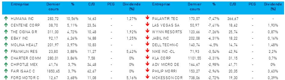 - Stellantis {{320348172, STELLANTIS NV, STLAP}} : le constructeur automobile franco-italo-américain prévoit d'investir environ 10 milliards de dollars aux États-Unis : le groupe prévoit d’annoncer bientôt un projet de 5 milliards, en plus d'une somme déjà promise. Ces fonds seraient utilisés sur plusieurs années pour diverses usines, des réouvertures, des recrutements et des nouveaux modèles, notamment dans l'Illinois et le Michigan. Le CEO Antonio Filosa, aux commandes du groupe depuis juin, veut redynamiser la marque Jeep et envisage également d'investir dans les marques Dodge et Chrysler. Malgré un impact prévu de 1,5 milliard d'euros dû aux droits d'importation américains, Stellantis vise une reprise grâce au lancement de nouveaux modèles.
