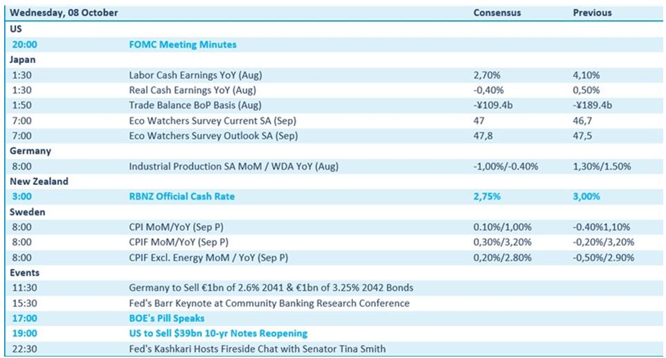 - Hier, les marchés d’actions sont restés au point mort un peu partout dans le monde, et les marchés obligataires ont retrouvé une certaine stabilité. Au cœur des préoccupations des marchés figurent évidemment les tensions politiques en France – et plus largement dans toute l'Europe –, l'élection de Sanae Takaichi au Japon et le shutdown en cours aux États-Unis. Vient cependant contrebalancer ces facteurs un optimisme sous-jacent toujours robuste, chez les investisseurs, ainsi qu’une nouvelle vague d'euphorie liée à l'intelligence artificielle.