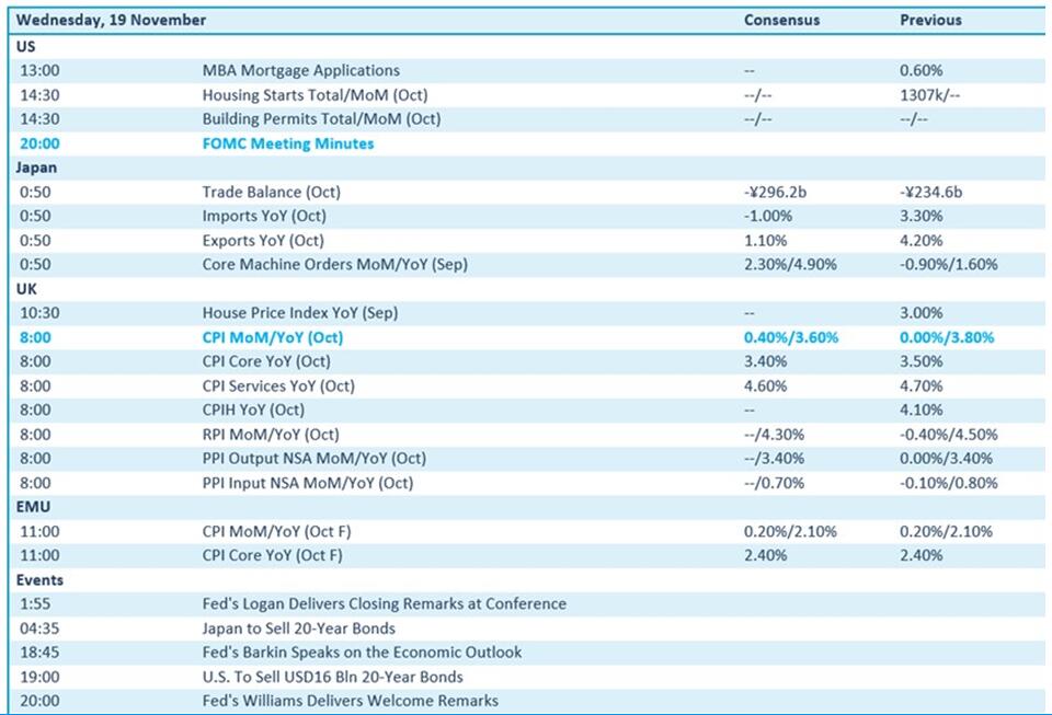 - États-Unis : procès-verbal du comité monétaire de la Fed, prêts hypothécaires MBA et nombre de logements neufs (octobre), permis de construire (octobre), placement de 16 milliards de dollars d'obligations (20 ans)