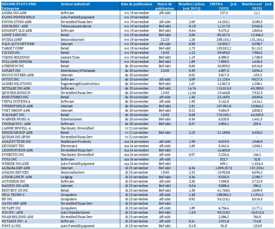 - Le recul observé en Europe s’avère cependant plus marqué : l'Euro Stoxx 600 a perdu 1,7 %, le CAC40, 1,9 % et notre BEL20, 1,5 %. En Asie, les choses sont quelque peu différentes : cette nuit, la Chine a progressé de 0,4 %, contrairement à la légère baisse subie à Hong Kong (-0,4 %), en Corée du Sud (-0,8 %) et à Taïwan (-0,6 %). Résilience également au Japon (+0,2 %), même si le fil rouge de la journée boursière asiatique pouvait se résumer comme suit « actualité peu fournie, prises de bénéfices nombreuses et spéculations en tous sens sur les résultats de Nvidia ».