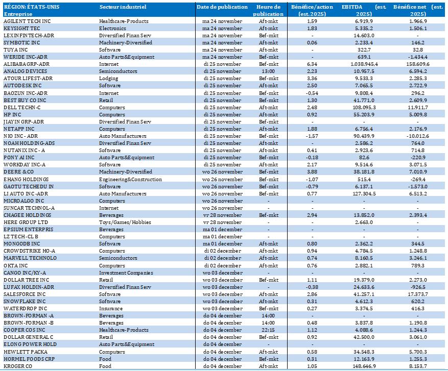 - Japon : marchés fermés à l’action du Labor Thanksgiving Day