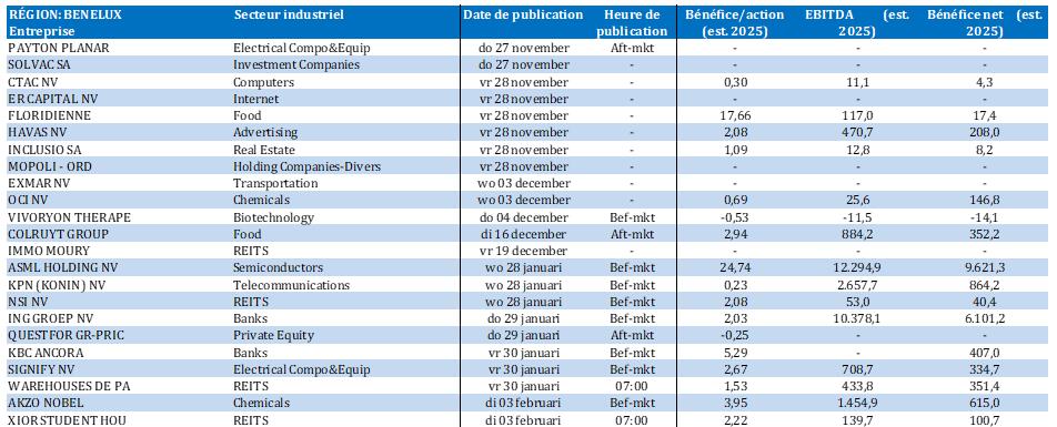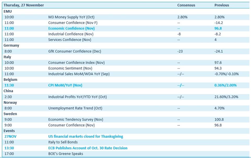 - Aujourd'hui, les marchés américains sont fermés à l’occasion des vacances de Thanksgiving. Vendredi aussi, les échanges y seront très limités. Vous pouvez donc vous attendre à une journée plutôt calme.